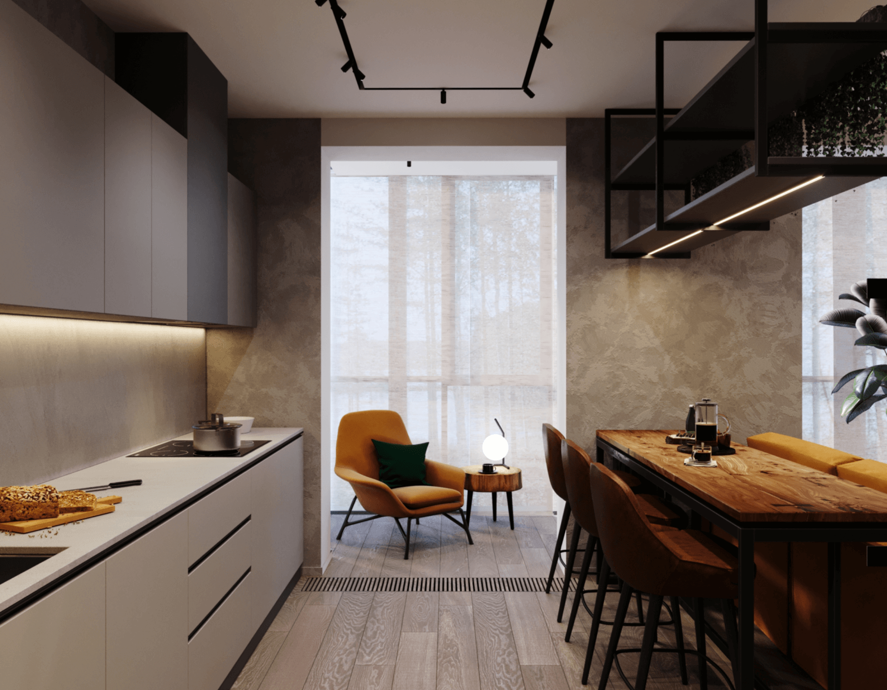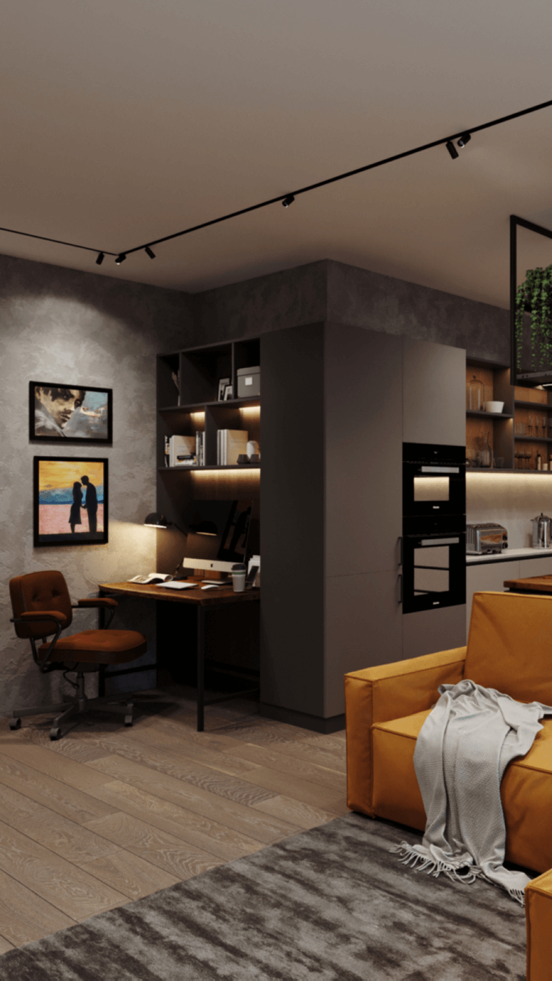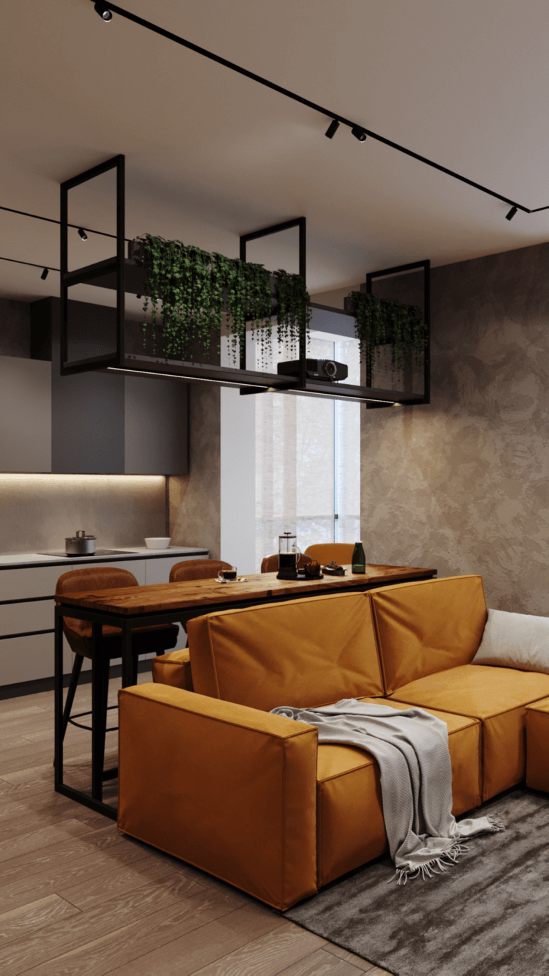 L'aménagement de cet appartement minimaliste pour un jeune couple se caractérise par un jeu de tons chauds et froids et de textures contrastées. Le gris et la moutarde, le bois et le béton sont souvent des combinaisons gagnantes.
