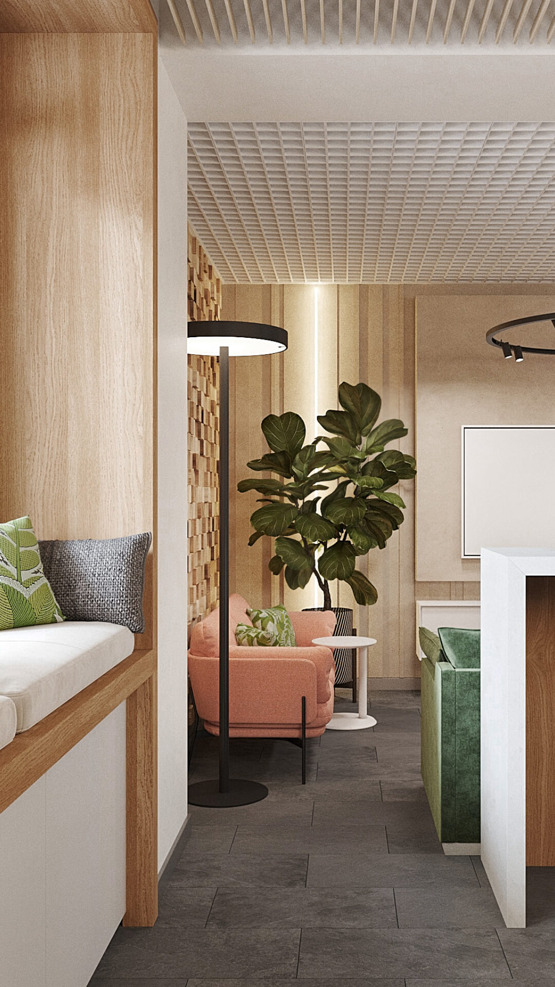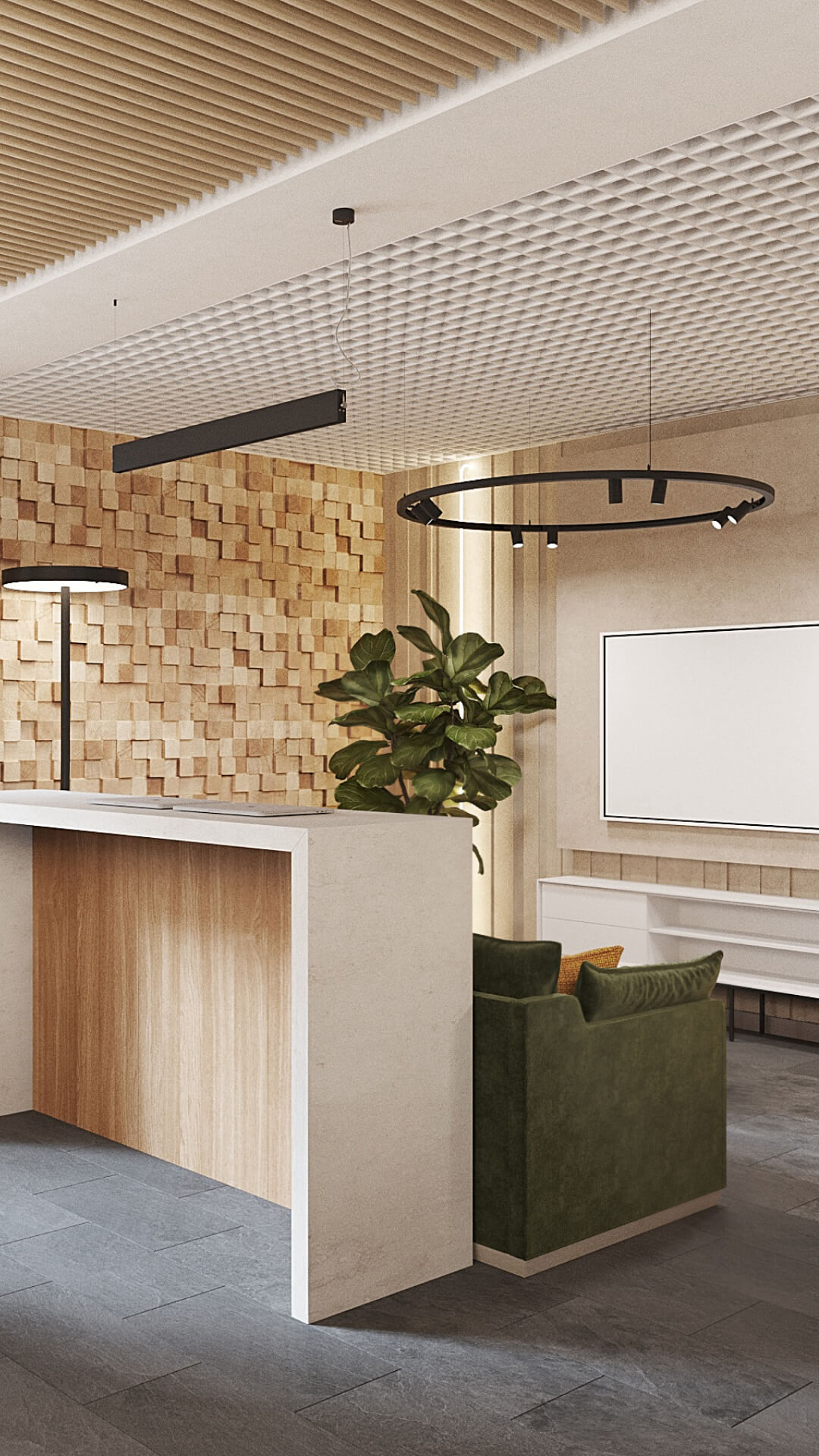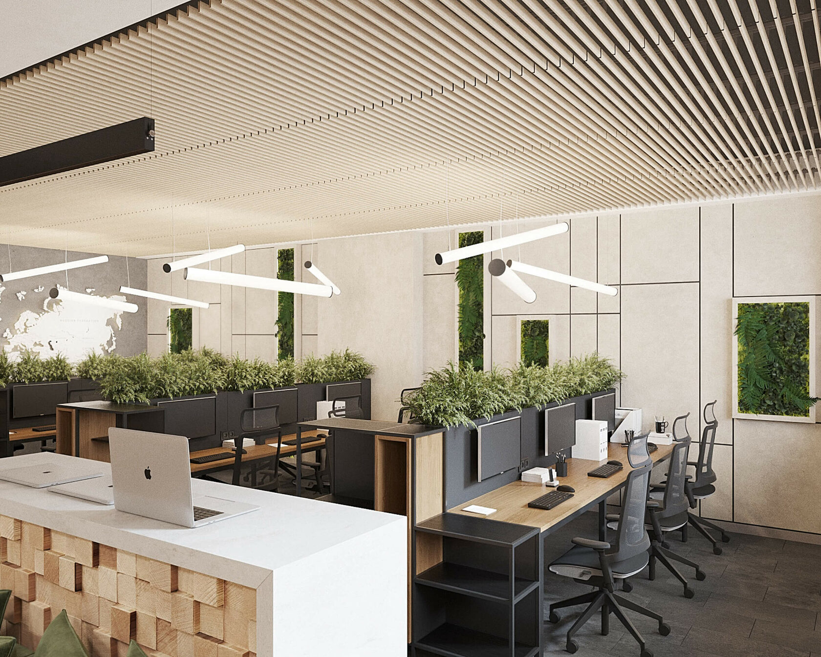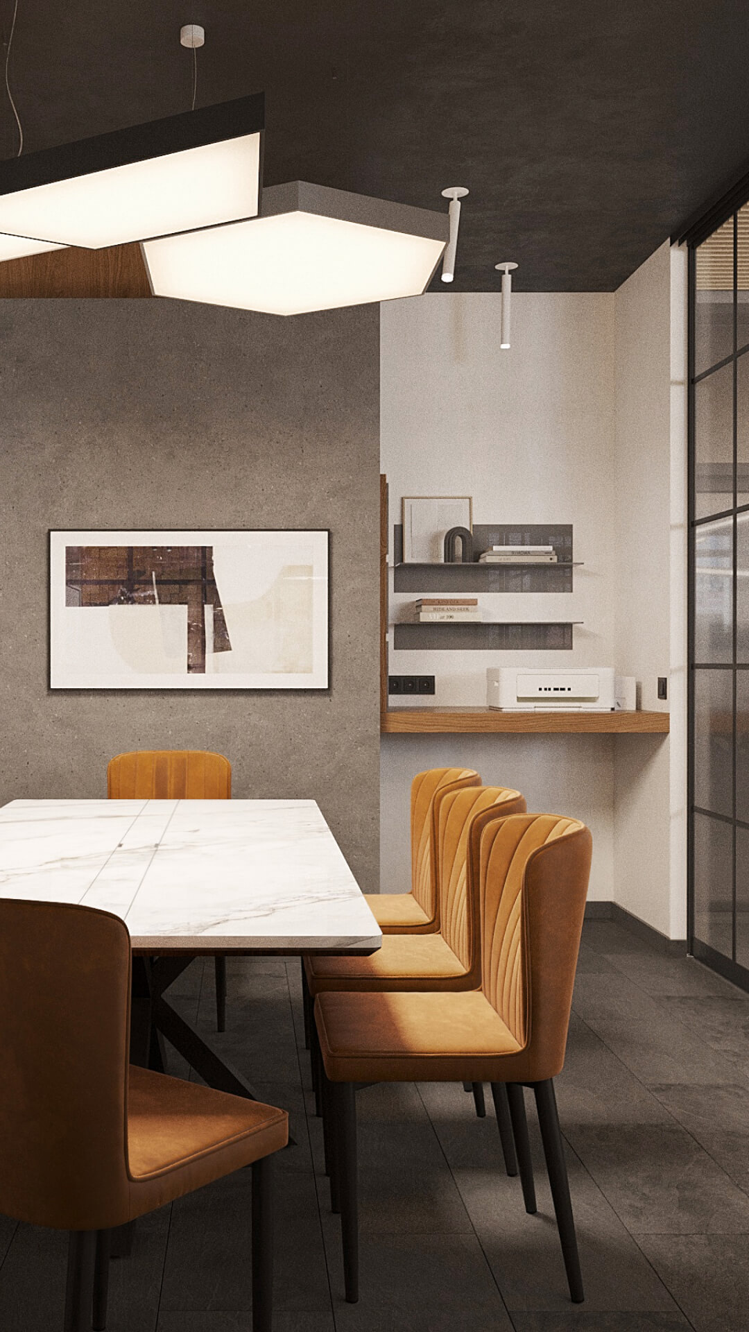 Nous avons conçu un bureau d'équipe pour une entreprise informatique moderne. Étant donné que de nombreux employés travaillent à distance, nous avons mis en place un environnement de hot desking. Le bureau est également conçu pour accueillir des réunions d'entreprise dans une ambiance conviviale et des négociations dans une salle isolée.