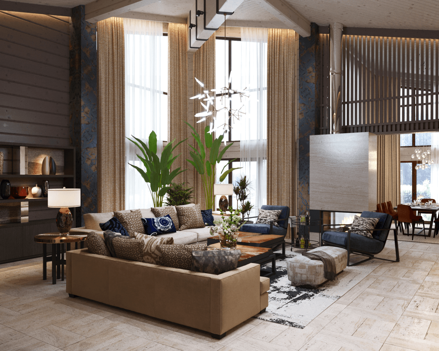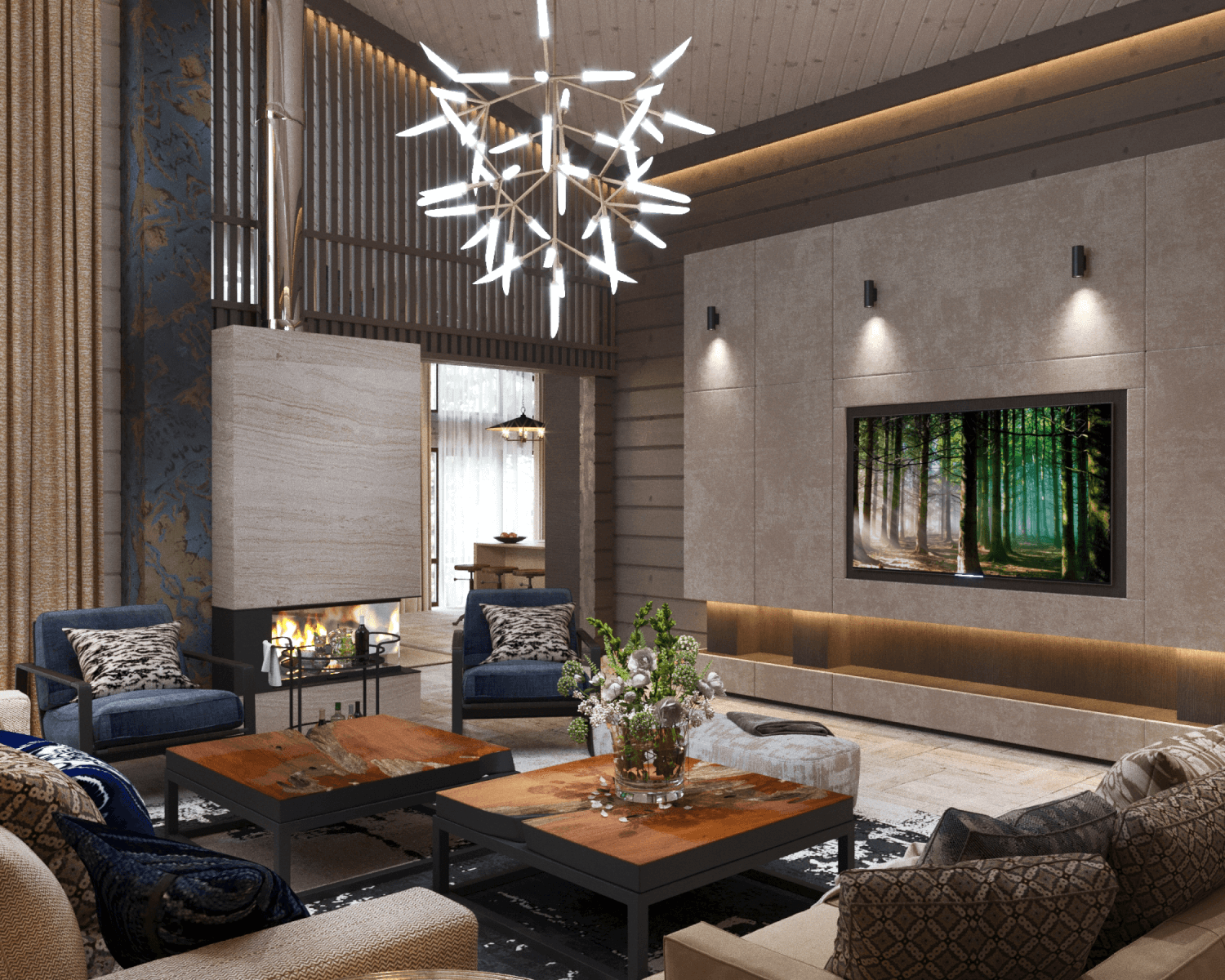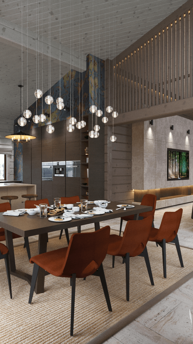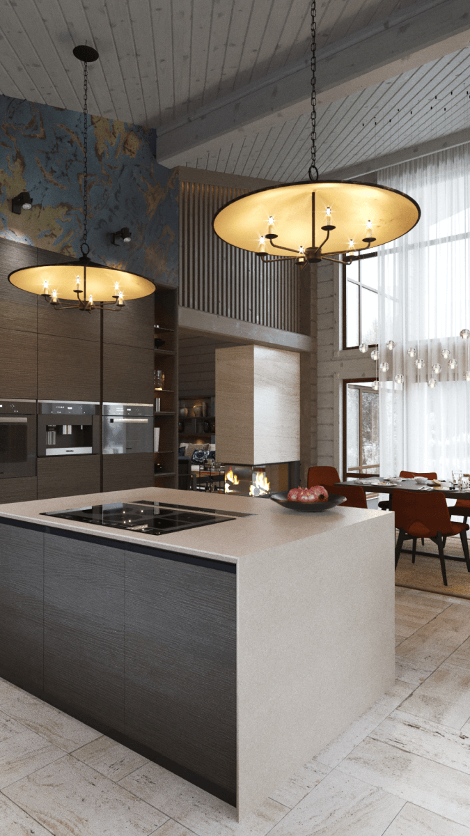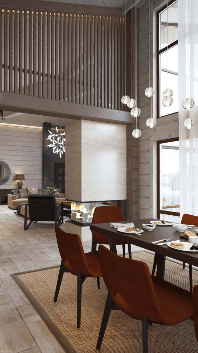 La conception de cette spacieuse maison en rondins intègre des éléments de décoration brute qui se marient harmonieusement pour un résultat très cosy. C’est un bon exemple de ce que les couleurs sombres peuvent être très efficaces pour ajouter non seulement de la profondeur, mais aussi du caractère.
