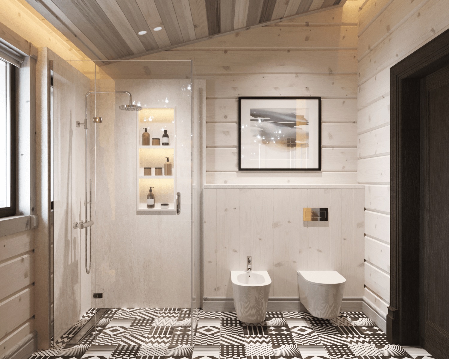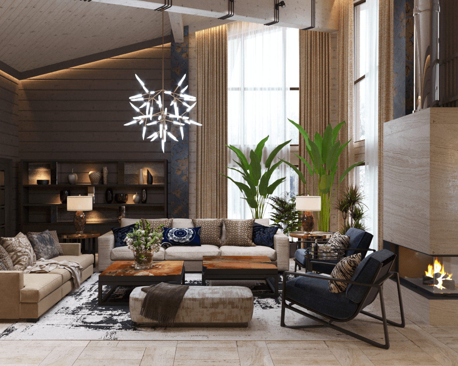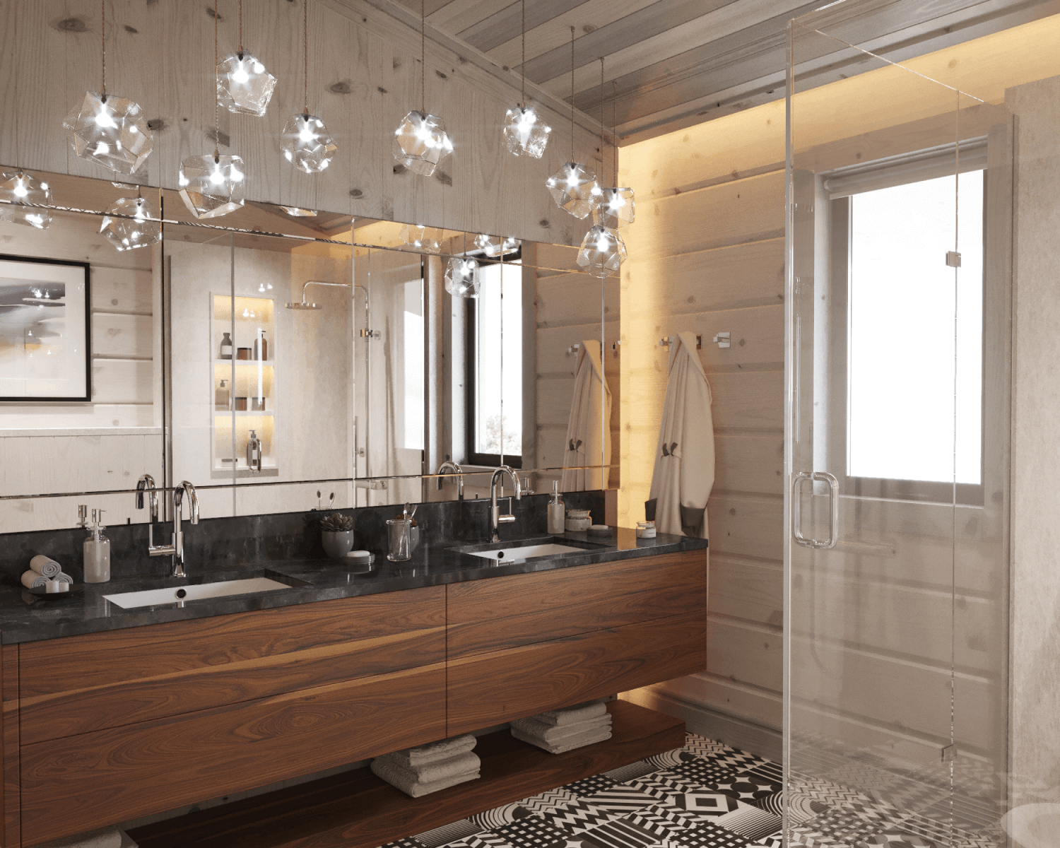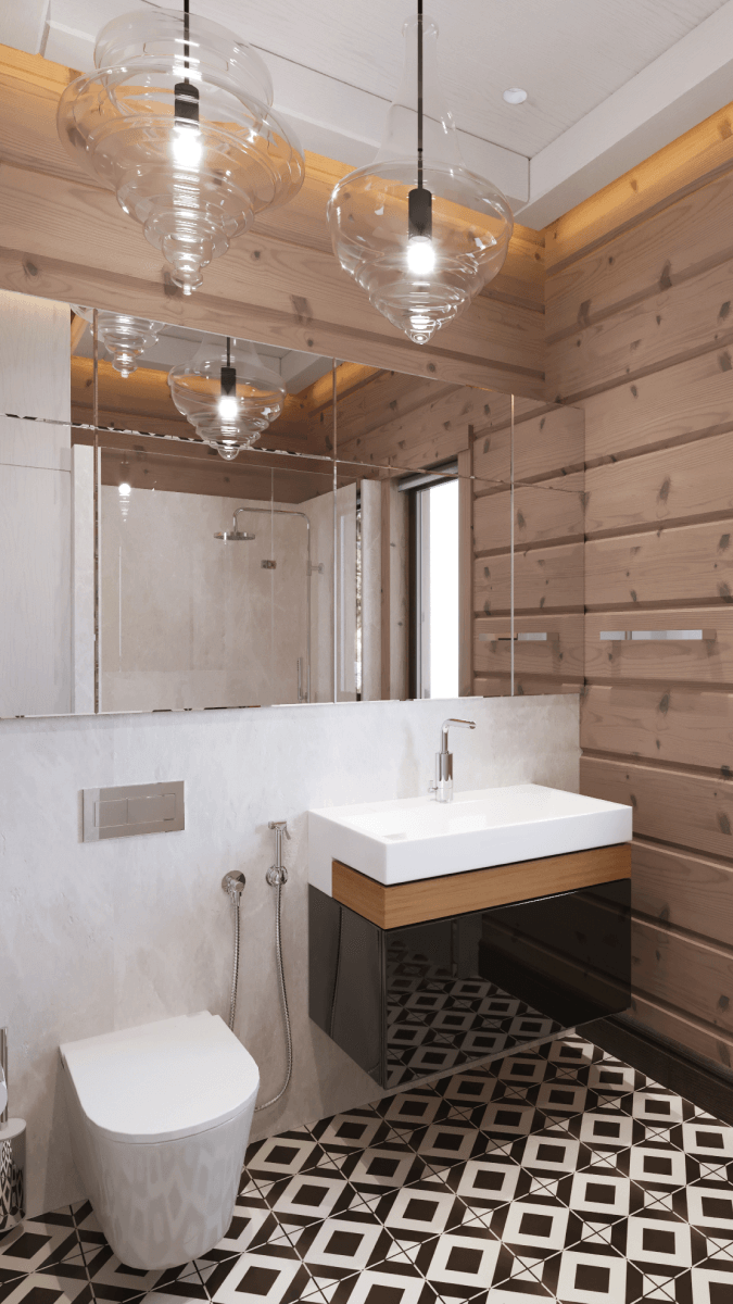 La conception de cette spacieuse maison en rondins intègre des éléments de décoration brute qui se marient harmonieusement pour un résultat très cosy. C’est un bon exemple de ce que les couleurs sombres peuvent être très efficaces pour ajouter non seulement de la profondeur, mais aussi du caractère.